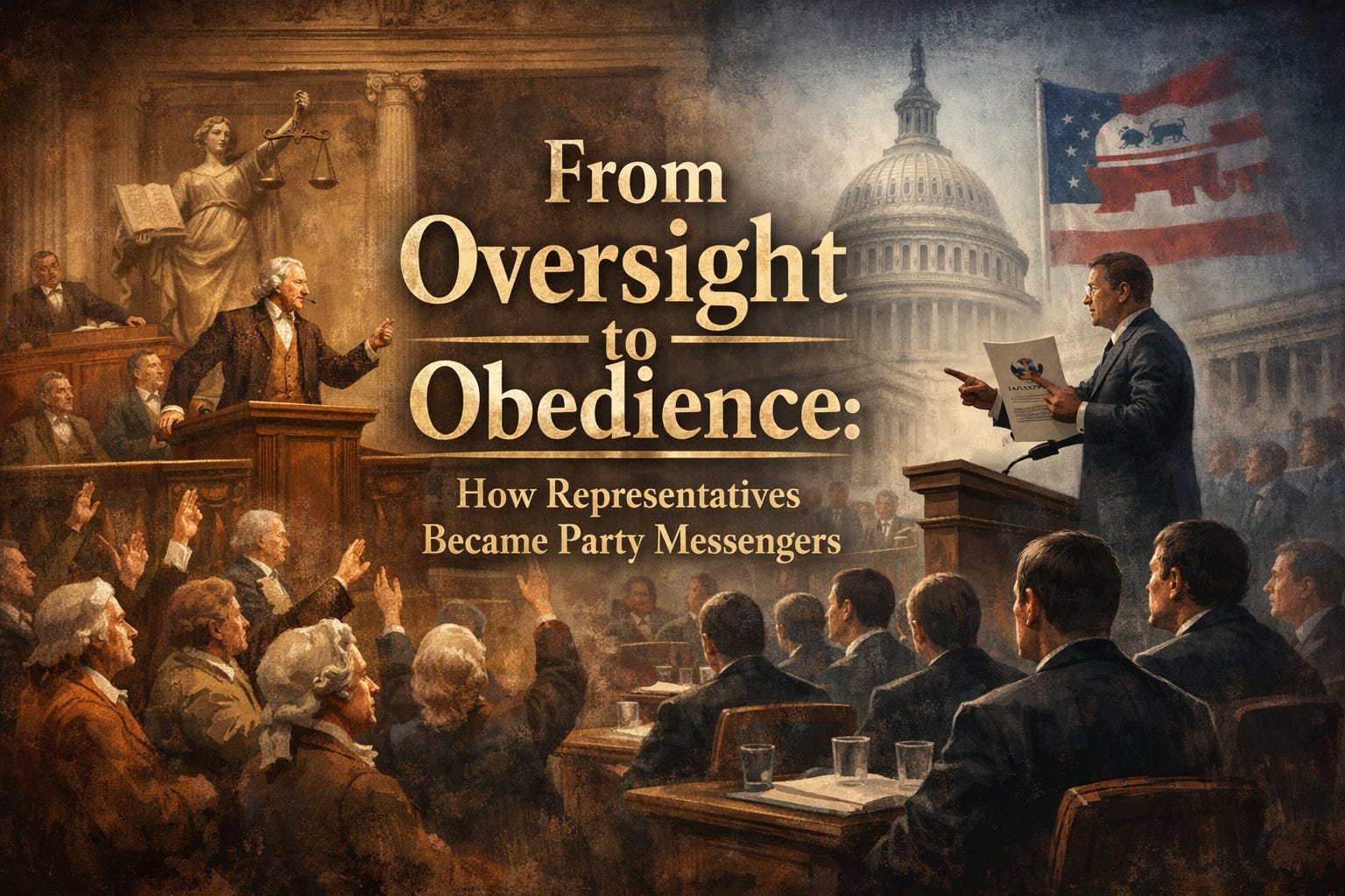 As this is developed it produces a different type of extreme. As opposed to the problem of unelected moms we increasingly now see the problem of most Representatives being beholden to the party center or those who exert direct pressure on the Central party apparatus. In short all too often most Representatives are The Messengers from the central government out to their voters. Carrying what has to be done because those who work in the intellectual center have come up with their own solution.